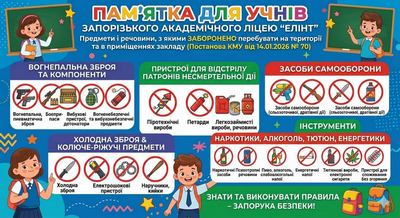 Предмети і речовини, з якими заборонено перебувати на території та в приміщеннях закладу загальної середньої освіти