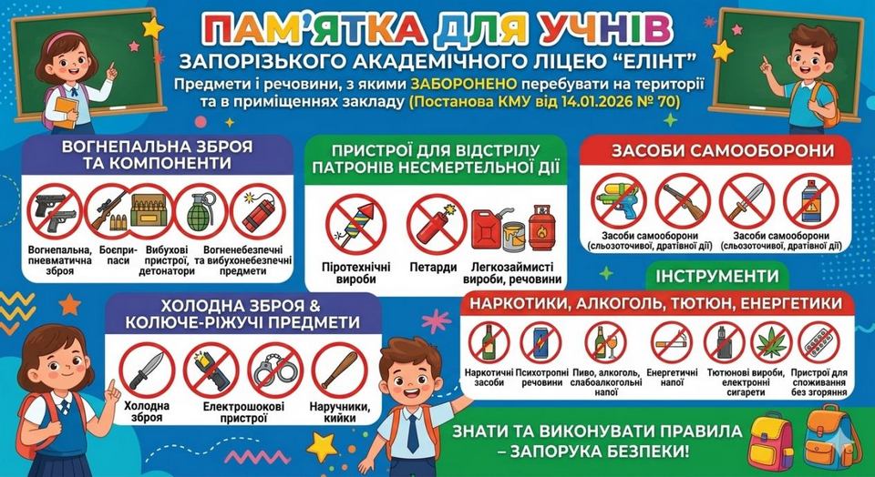 Предмети і речовини, з якими заборонено перебувати на території та в приміщеннях закладу загальної середньої освіти