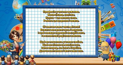 Працювати вчителем - покликання долі! Зі святом! Бажаємо творчого натхнення, міцного здоров'я та успіхів!