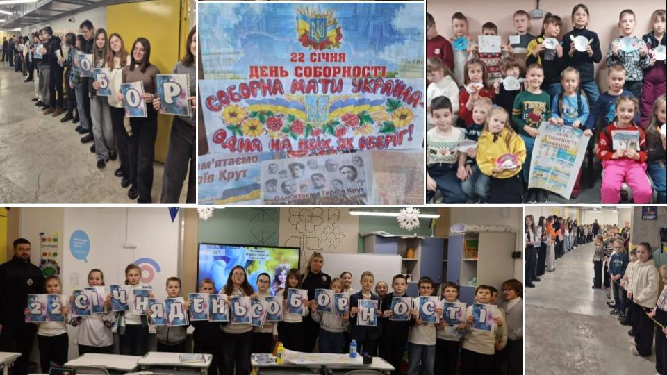З нагоди Дня Соборності України в стінах школи відбувся змістовний інтерактивний захід, спрямований на утвердження національної єдності та виховання патріотизму серед учнівської молоді. Діти були не просто слухачами, а стали безпосередніми учасниками відтворення історичних подій. Проведено пізнавальну вікторину, під час якої школярі демонстрували свої знання з історії та культури України, змагаючись у кмітливості. Особливу увагу було приділено символізму «живого ланцюга» як знаку незламності та соборності нашого народу. Взявшись за руки, діти відтворили славетну історичну традицію, демонструючи, що територіальна цілісність та духовна згуртованість починаються з кожного з нас.